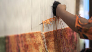 An 8-by-10 rug made by two weavers can take anywhere from six to eight months to weave. “Now before that, you have to spin the wool, dye the wool and set up the loom,” said Hadi.