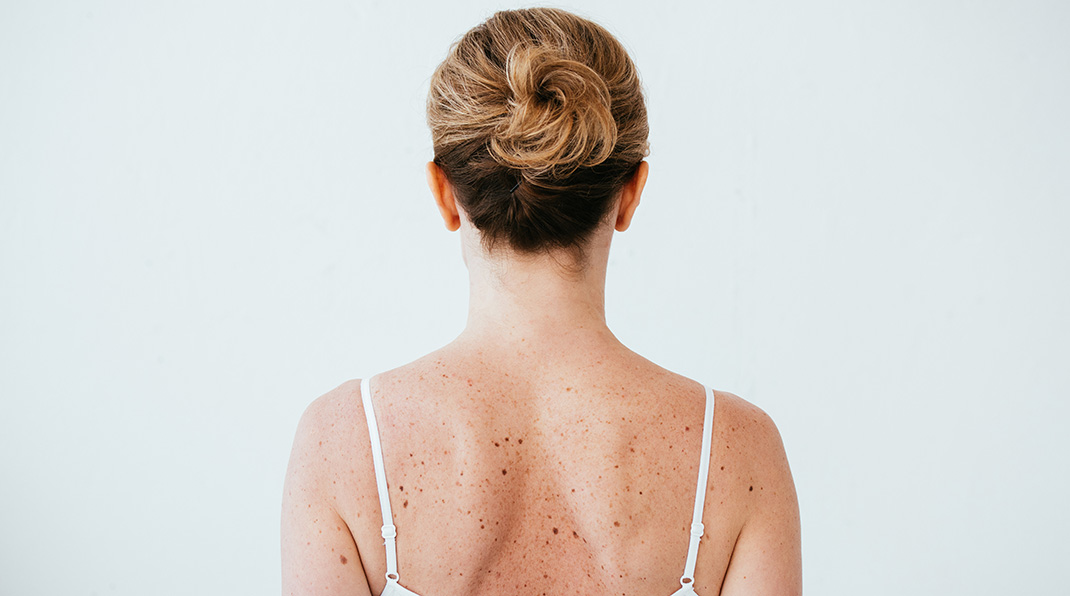 back view of woman with melanoma on diseased skin isolated on white back view of woman with melanoma on diseased skin isolated on white