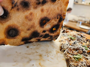 While fine dining in its ingredient sourcing and attention to detail, at its heart, Ardor Park is a simple pizzeria producing pies with ingredients largely familiar to most diners. There’s a classic margarita, a white garlic parm and a Charmander pizza, a nod to the fire-breathing Pokémon that includes pepperoni and a triple spice threat of jalapenos, chili flakes, and hot honey on a blush sauce base. There’s even a Hawaiian pizza called the La Pina Loca, which replaces the usual soggy chunks of canned pineapple found on lesser pies with fire-roasted pineapple and joins it with pancetta (a big improvement over the usual deli ham), pickled jalapenos, red sauce, mozzarella and hot honey.