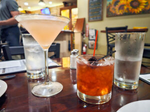 Elderflower martini (left) and maple old fashioned cocktails.