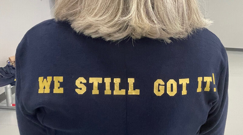 Dave Beyer, 78, is part of the team. While he doesn’t participate in the cheering, he is an active member.